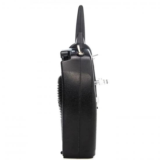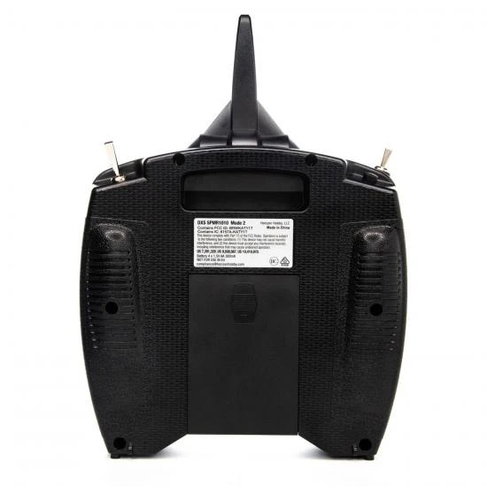 Weight distribution, switch placement and trim switch positions have been optimized for comfort and fatigue-free control. An integrated handle and neck strap hook are included for easy carrying. Ports are provided in the rear battery compartment for using optional wireless trainer and data port. The SRXL2™ DSMX® Remote Receiver (available separately) is required for wireless trainer support. Registration and firmware updating are possible from your PC by downloading the software from the DXS product page at SpektrumRC.com and using the USB Programming Cable (available separately).