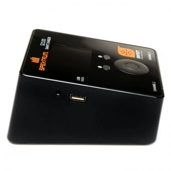 The Spektrum™ S2100 Smart Charger is the first dual-output AC Smart Charger to feature Spektrum Smart Charging technology. Small and portable, this 200W charger features the brand new Spektrum IC3™ connector that delivers a robust connection that also reads vital battery content that relays to a bright LCD color display to clearly show unique information and log data about your Smart Battery such as how many charge cycles the pack has, and much more.